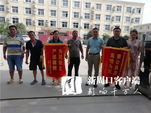 8月7日上午,淮阳县朱集乡马楼行政村的6名村民将两面写有“为民做主、严惩腐败”和“秉公执法、真情为民”的锦旗分别送到该县纪委审理室和第四监察室负责人手中,以表达他们的感激之情。