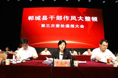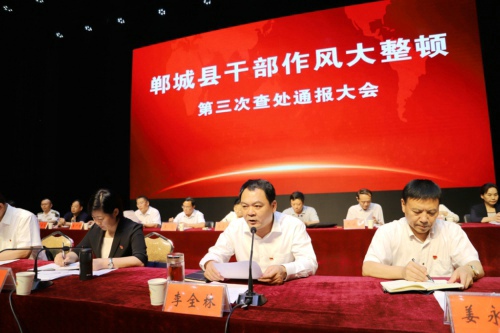 8月15日下午,郸城县召开干部作风大整顿第三次查处通报大会。贯彻全市干部作风大整顿查处通报会议精神和县委十二届四次全会暨县委工作会议精神,通报典型案例,宣布处理决定,传导工作压力,夯实工作责任,为进一步推进各项工作任务落实、打好打赢脱贫攻坚战提供坚强有力的作风保障。县委书记罗文阁发表讲话,县长李全林主持。全县副处级以上领导干部和县、乡、村各级各部门负责人参会。