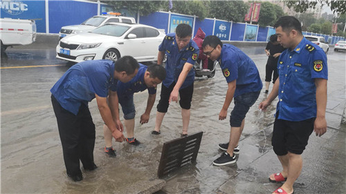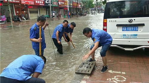郸城县城管大队负责人介绍,从早上6点开始,该大队就对县城区域内疑似积水路段进行了排查澄清底数,发挥本单位熟悉城市供排水布局的工作优势,根据下水道窨井口所在路段进行分工,5人一组分别值守各路段。