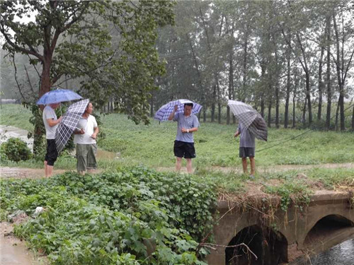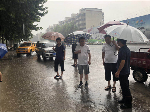 短时强降雨造成交通干渠水位暴涨,由此流入光明渠。城南办事处书记韩少华放心不下,早早地就走上街头,到重点地段检查防洪排涝情况,安排人员进行排涝。