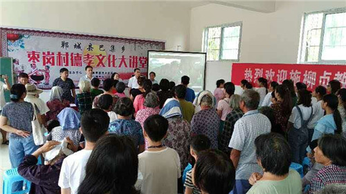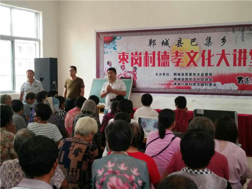 8月17日至19日,郸城县巴集乡枣岗文化活动中心举行了为期三天的徳孝文化大讲堂,本次活动由县质监局、县国学会、枣岗行政村党支部村委会主办。旨在进一步树立社会新风,建立良好的家风家规,深入弘扬和传承中华徳孝传统文化,积极培育和践行社会主义核心价值观,提高公民素质和社会文明程度,形成“以德修身、以身孝亲”的良好风尚。