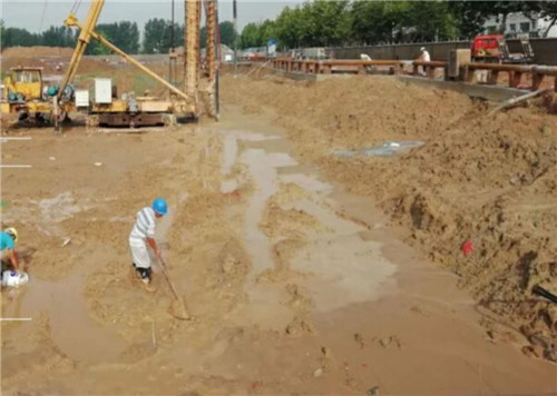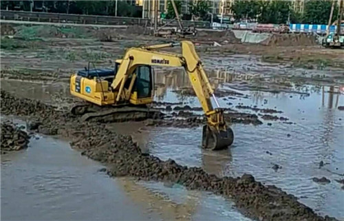 当日16时许,记者在顺和家园施工现场看到,由于近几天连降暴雨,基坑内积水严重,目前,施工方投入井点降水水泵70台,基坑内抽水污水泵20台正在进行基坑抽水,为及时复工创造条件。