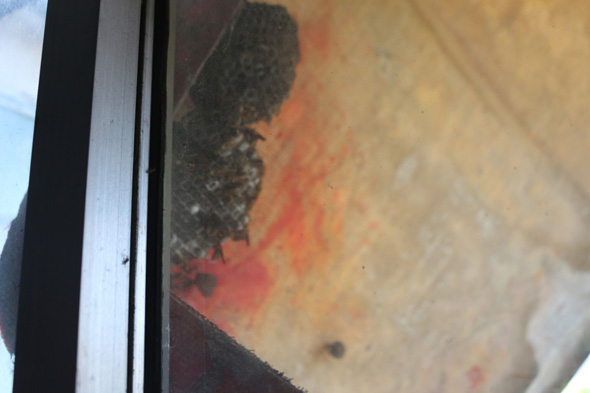 8月20日下午4时许,在川汇区八一路与建设路交叉口西100米路南的小区内,消防官兵发现一户居民5楼客厅窗外雨搭上,有一直径约为10厘米的马蜂窝,雨搭也因为天气原因摇摇欲坠,由于窗外就是人行道,存在很大的安全隐患。