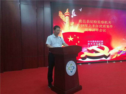 8月21日下午,鹿邑县委常委、纪委书记、监察委主任韩林出席县纪委监察委机关2018年上半年优质案件观摩评审会议并讲话。县纪委监察委机关全体人员、派驻纪检监察组、巡察办和全县各乡镇纪检书记参加了会议。