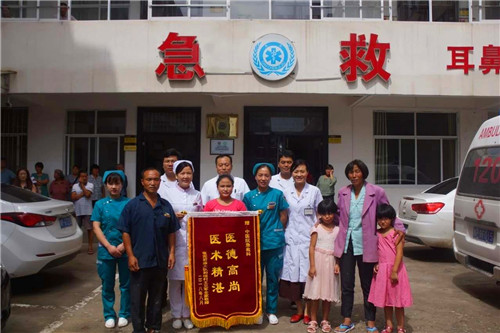 8月20日上午,伴着欢快的唢呐声,郸城县张完乡的王先生和妻子、女儿一起怀着激动的心情,带着一面印有“医德高尚 医术精湛”的锦旗来到郸城县中医院,把锦旗送到该院急诊科医护人员手中,算是了结了一桩让他和家人牵挂了两年的“心事”。