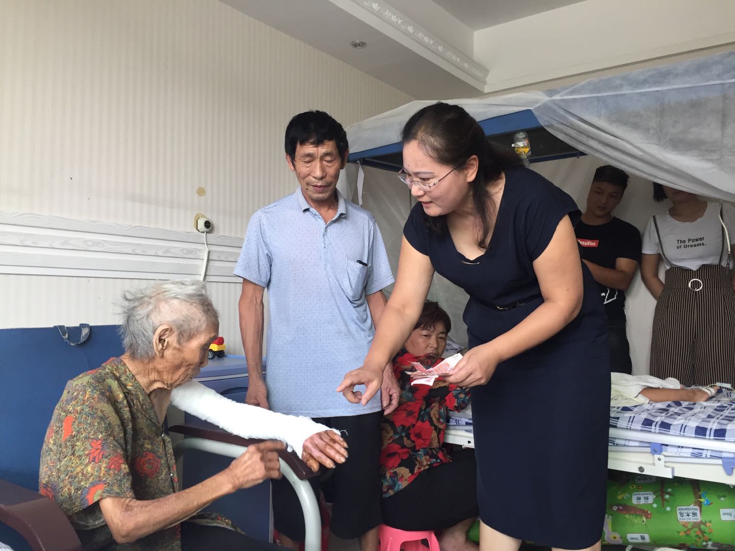8月26日,驻村第一书记刘春华和村脱贫责任组组长李小林怀着感激之情,为周口烧伤医院送去锦旗两面。周口烧伤医院长张岿说:“帮扶工作是党的工作,县、乡、村干部的真心帮扶,我们医院也应当发挥扶贫济困的作用,尽一些社会责任,为贫困的群众做点好事,解决他们的实际困难”,院方当即决定赠送给李二俊老太太2000元现金营养费。”