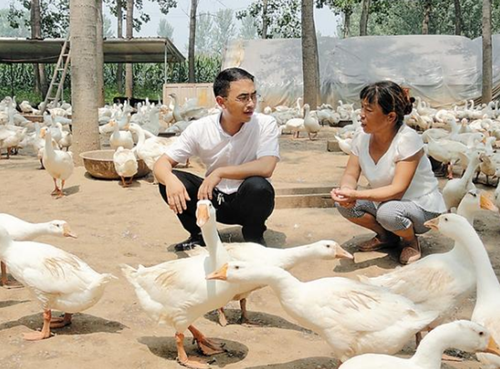 邓城镇扶贫干部帮贫困户养鹅致富