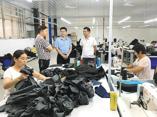县委常委、宣传部长李本磊在“巧媳妇”工程加工点调研