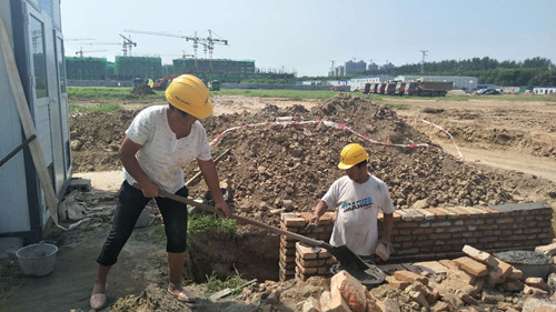 据该项目相关负责人介绍,德和家园项目于7月18日举行奠基仪式,8月10日举行土方开挖仪式,现在正进行土方开挖和降水井施工。目前,该项目已完成土方开挖1.45万立方米,约完成50%。降水井总计划实施177口,已完成18口,预计9月10日全部完成。根据项目地块的实际水位情况,一部分将采用原地面桩基施工,另一部分采用取表层土后进行桩基施工,预计9月初打桩机械进场。