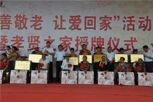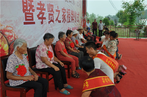 大会开始之前,来自该乡20个行政村的广场舞代表队、戏曲代表队、唢呐代表队先后出场,訾秀玲一曲《黄土高坡》赢得全场观众雷鸣般掌声。紧接着,好儿子、好媳妇代表上台为自己的父母磕了3个响头,以表达对父母养育之恩的感激之情,老人们脸上流露出激动和幸福的泪水,现场掌声经久不息。县领导在主席台上为36个孝贤之家授牌,并向获奖者表示祝贺。据介绍,该乡自开展孝善敬老接老人回家活动以来,已有200多名独居老人被儿子、媳妇接回家居住。为了表彰接老人回家的好儿子、好媳妇和孝贤之家,该乡组织、策划了这次大型活动。