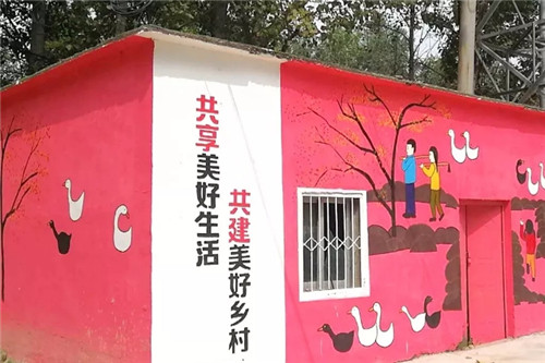 墙绘的内容很丰富,有健康素养方面的,有党建方面的,也有精准扶贫的内容,墙绘是以中国传统国画、漫画相结合的方式展现在墙上。墙绘内容涉及养成良好的生活习惯、精准扶贫建设以及农民脱贫致富的增收产业等内容。