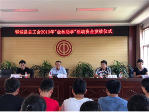 8月30日上午,郸城县总工会2018年“金秋助学”活动助学金发放仪式在县总工会五楼会议室举行。