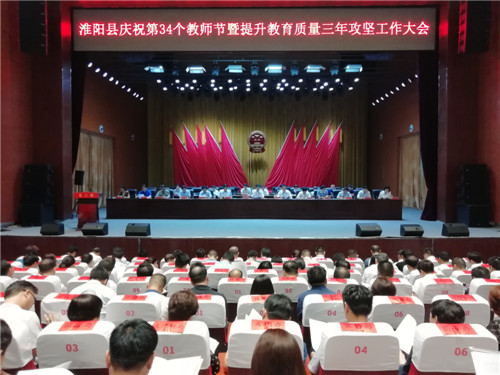 9月3日,在第34个教师节来临之际,淮阳县庆祝第34个教师节暨提升教育质量三年攻坚工作大会召开。会议主要目的是总结一年来教育工作取得的成绩,对教育战线涌现出的“优秀校长”“师德标兵”“优秀班主任”“优秀教师”进行表彰,并对全县提升教育质量三年攻坚工作进行全面动员部署。