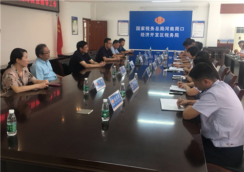 9月4日,开发区党委书记田林、管委主任王文峰、管委会副主任支利民带领有关部门负责同志,到开发区税务局调研指导。