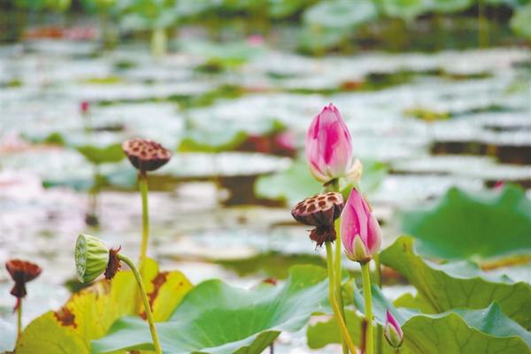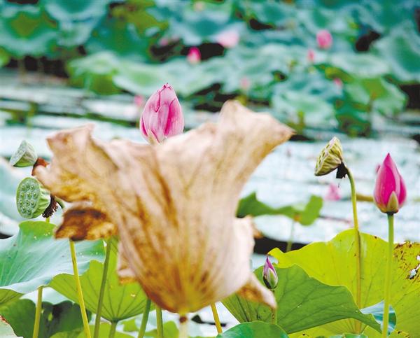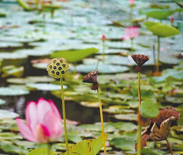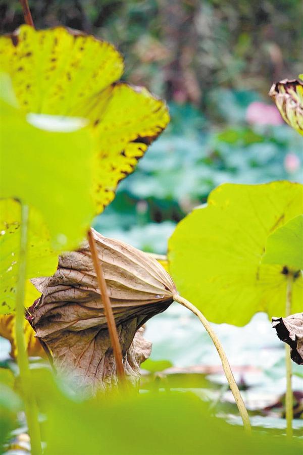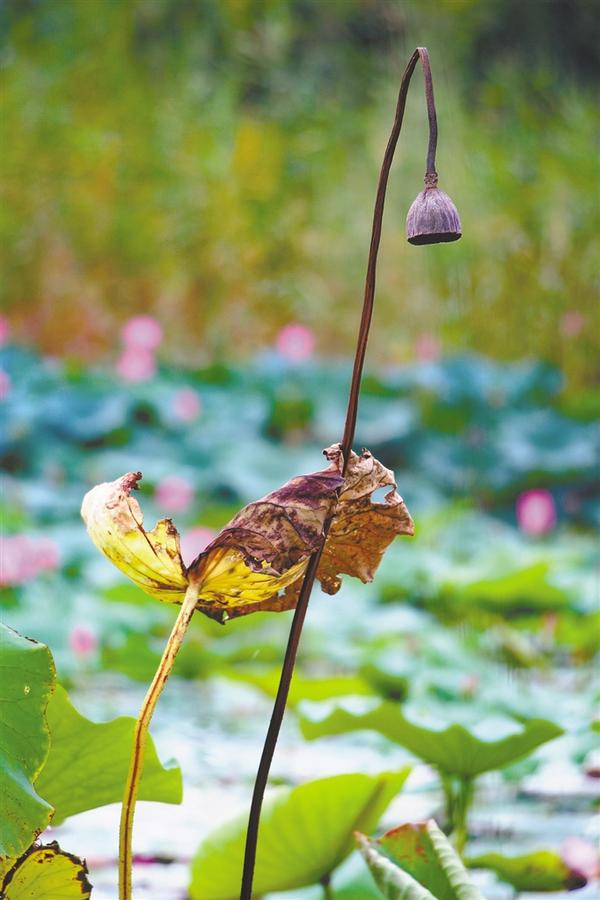 入秋以来,扶沟县人民公园的荷花也入了“秋”,虽没有了夏日的生机勃勃,但在秋日阳光的映照下,也格外美丽。