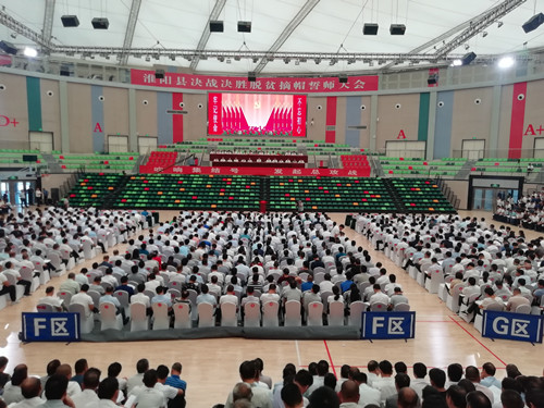 9月7日,淮阳县决战决胜脱贫摘帽誓师大会在县体育馆举行,誓师大会主要目的是在脱贫攻坚的关键时期,动员全县上下振奋精神,举全县之力攻坚克难,迅速形成决战热潮,确保如期完成脱贫摘帽目标任务。