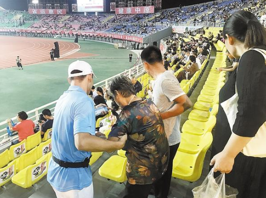 9月12日,省十三运会开幕式前,观众进场秩序井然,场内志愿者搀扶老人就座;开幕式结束后,观众席上仍干干净净……