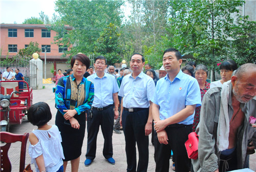 9月13日,郸城县政府副县长肖炜在县卫计委主任付登霄、副主任禹广民、疾控中心主任张吉志的陪同下,到丁村乡大贺庄行政村了解慢性病与营养监测调查工作进展情况。