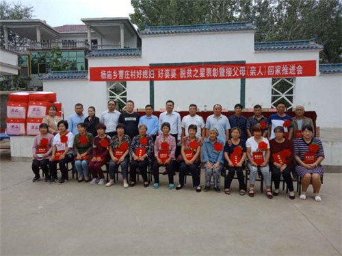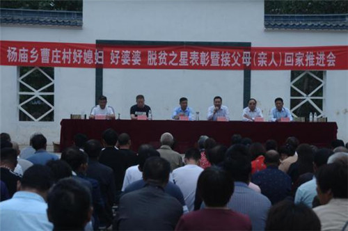 为助力脱贫攻坚,9月14日,杨庙乡曹庄行政村召开“好媳妇、好婆婆、脱贫之星”表彰暨接父母(亲人)回家推进会。太康县委巡察办主任刘永新、太康县人民银行副行长王建华、太康县杨庙乡党委书记许兵轼、太康县杨庙乡党委副书记陶云峰、太康县委巡察办副科级干部李陆军等参加了会议。会议由杨庙乡人大主席陈俊洪主持。