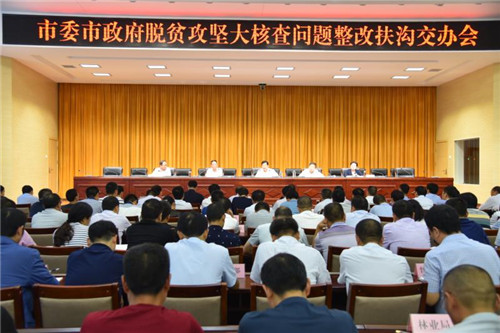 9月14日,市委市政府脱贫攻坚大核查问题整改扶沟交办会召开。市委常委、常务副市长吉建军,市委副秘书长、市扶贫办主任韩华,市扶贫办副主任王启辉,市脱贫攻坚第三督导巡查组组长郭东勋出席会议。县委书记卢伟、县长张颖波等县四个班子领导及副处级干部等参加会议。张颖波主持会议。