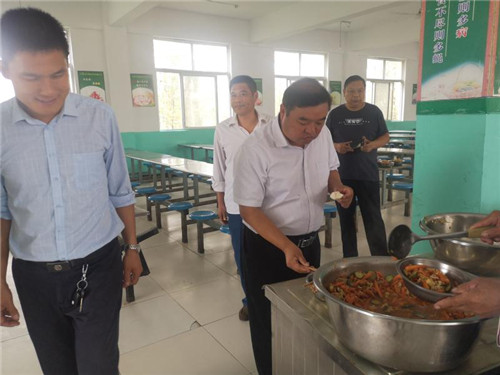 一份营养餐、殷殷公仆情。9月17日上午,太康县教体局局长王正义、副局长孙传海、行审股股长姚学贞到该县老冢镇一中、东村小学、后石小学、刘寨小学查看学生营养餐供餐情况。老冢镇中心校校长刘建新、业务主任刘海波陪同。