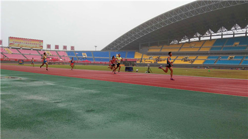 当日上午10时许,一直下着的小雨突然停止,空气中弥漫着一股清新的味道。参加少年男甲400米决赛的运动员们在各自的赛道上静静等待。“砰”的一声,随着发令枪的响起,比赛正式开始,选手们如离弦之箭一般冲向终点。