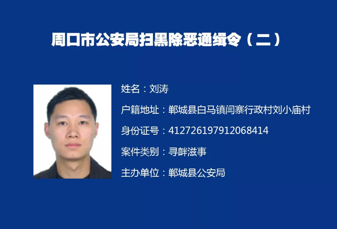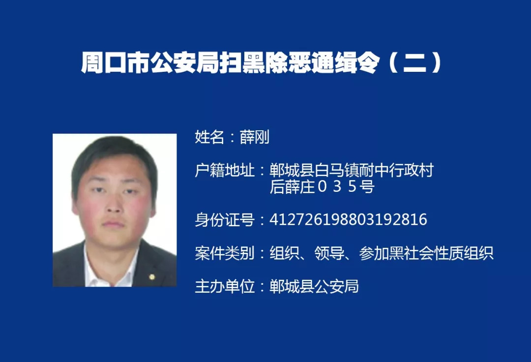 为贯彻落实中共中央、国务院《关于开展扫黑除恶专项斗争的通知》和最高人民法院、最高人民检察院、公安部、司法部《关于依法严厉打击黑恶势力违法犯罪的通告》精神,我市公安机关对我市第一批5名涉黑涉恶在逃人员进行悬赏通缉,敦促其尽快投案自首,争取宽大处理。