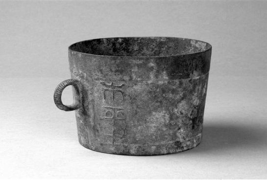 该器物铜质,高10.8厘米,口径15.9厘米,底径13.9厘米,重1040克。体呈圆筒状,上略大于底,素面直口,矮圈足,口下有鋬,一侧有一铭文“市平斗”3字,通体铜绿色,是一件铸有铭文的汉代计量标准器具,反映了汉代的计量方式。
