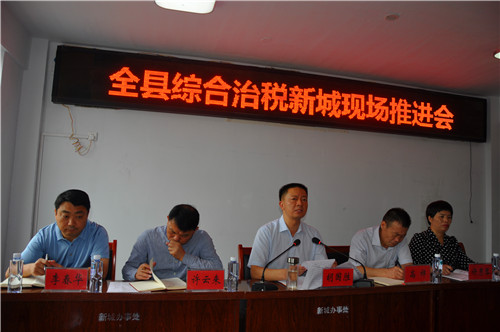 会议由县政府办公室副主任许云来主持,县综合治税领导组办公室主任雷立新通报全县综合治税工作情况,新城办党委书记马三华、练集镇党委书记张妍燕作经验介绍 。