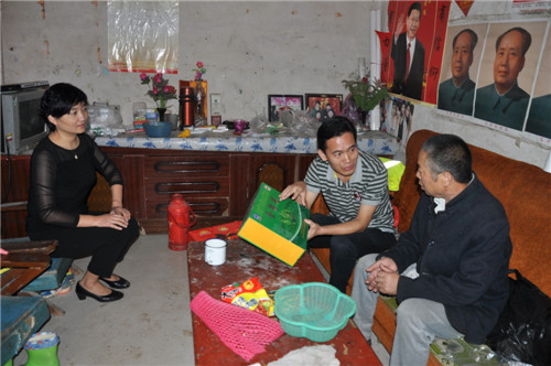 当日上午,秋雨绵绵。郝合生一行在省检察院驻瓦房庄第一书记王继锋的带领下,到5个贫困户家庭走访慰问。村民王三猫患肺气肿,因病致贫,家庭两口人,只有一人有劳动能力。看到前来慰问的人群,他激动地说:“感谢共产党,感谢王书记,感谢意如酒店的领导!”