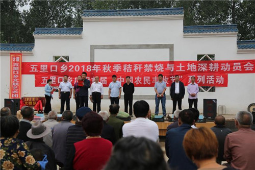 启动仪式在《金鼓迎宾朋》喧天锣鼓声中拉开序幕。程中原致辞时说,经党中央批准、国务院批复,自2018年起,国家将每年农历秋分设立为“中国农民丰收节”。9月23日,是首届中国农民丰收节。近年来,五里口乡党委、政府始终将“三农”工作当作重中之重,以增加农民收入为核心,大力发展种养殖富民产业,以轩尧、王寺安、李公玉、范楼的辣椒、菊花种植基地,以五西、王庄的优质花生种植基地,以申庄、邵楼的葡萄种植基地,以刘店为主的中草药种植基地,以桂李为主的山药种植基地,扎实推进农业全面升级,全面落实“产业兴旺、生态宜居、乡风文明、治理有效、生活富裕”总要求,以科学务实的举措加快推进农业农村现代化。