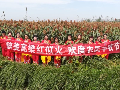 前来跳舞的负责人沈美云这样告诉记者说:“为喜迎并庆祝这一节日,我们专门排练了开门红这支舞曲,专门跑到万亩红高粱地头来跳,只有这样,才足以表达我们对这一节日的庆祝,才足以表达我们丰收后的喜悦心情。”