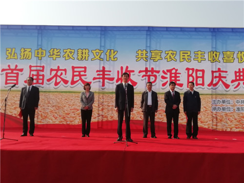 县委书记马明超宣布淮阳县首届“中国农民丰收节”庆典活动开幕。县委副书记、政法委书记岳新坦主持庆典仪式。戴亮和副县长王汝凌分别致辞。