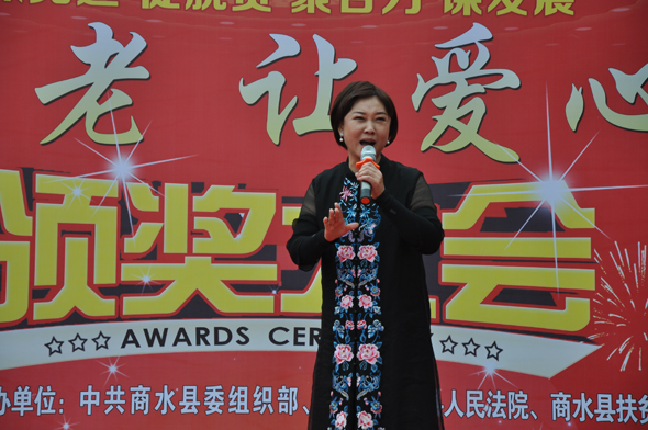 今年以来,我市各地以“六村共建”为抓手,大力发展群众文化事业,经常开展戏迷擂台赛、快乐星期天演出、舞台艺术进基层、道德模范表彰会、流动图书进校园等活动,宣传党和国家政策,丰富群众文化生活,助力脱贫攻坚。图为近日国家一级演员党玉倩在商水县巴村镇“孝善敬老”表彰会上为基层群众演唱豫剧选段。 记者 付永奇 摄