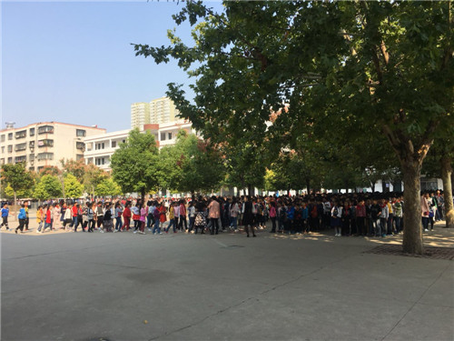 在第二节课后,伴随着警报铃声响起各位老师迅速到达指定岗位,各班语数老师帮助学生做出正确逃生姿势,沿着学校指定楼梯口逃生,有序地到达操场安全地带,班主任及时清点人数层层上报。整个演练过程既紧张激烈,又有条不紊,学生基本做到下楼梯快速行走,先到先下,无强行冲、撞、挤的行为,动作迅速,不吵闹,不慌乱。做到临危不惧,沉着冷静。据介绍,安全演练的目的是通过演练使广大师生学习和掌握逃生自救知识,熟悉逃生疏散路线,增强安全自救意识。