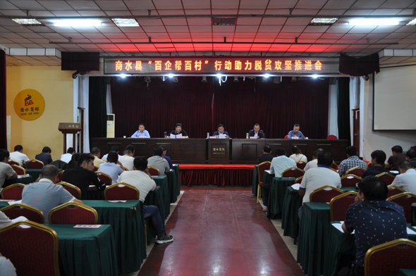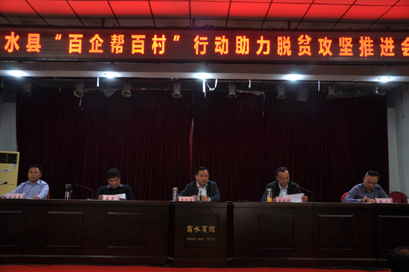 9月28日下午,商水县召开“百企帮百村”助力脱贫攻坚推进会。 县委常委、统战部长李远富、县政协副主席、工商联主席彭发光、县产业集聚区管委会主任姜军等出席会议。