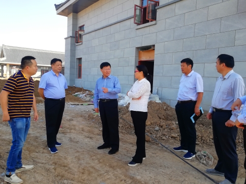 梁建松一行实地查看了老子学院景观绿化、报告厅、宾馆等相关基础设施,详细了解项目进度、规划、工期等情况,并在现场提出指导性的意见和建议。