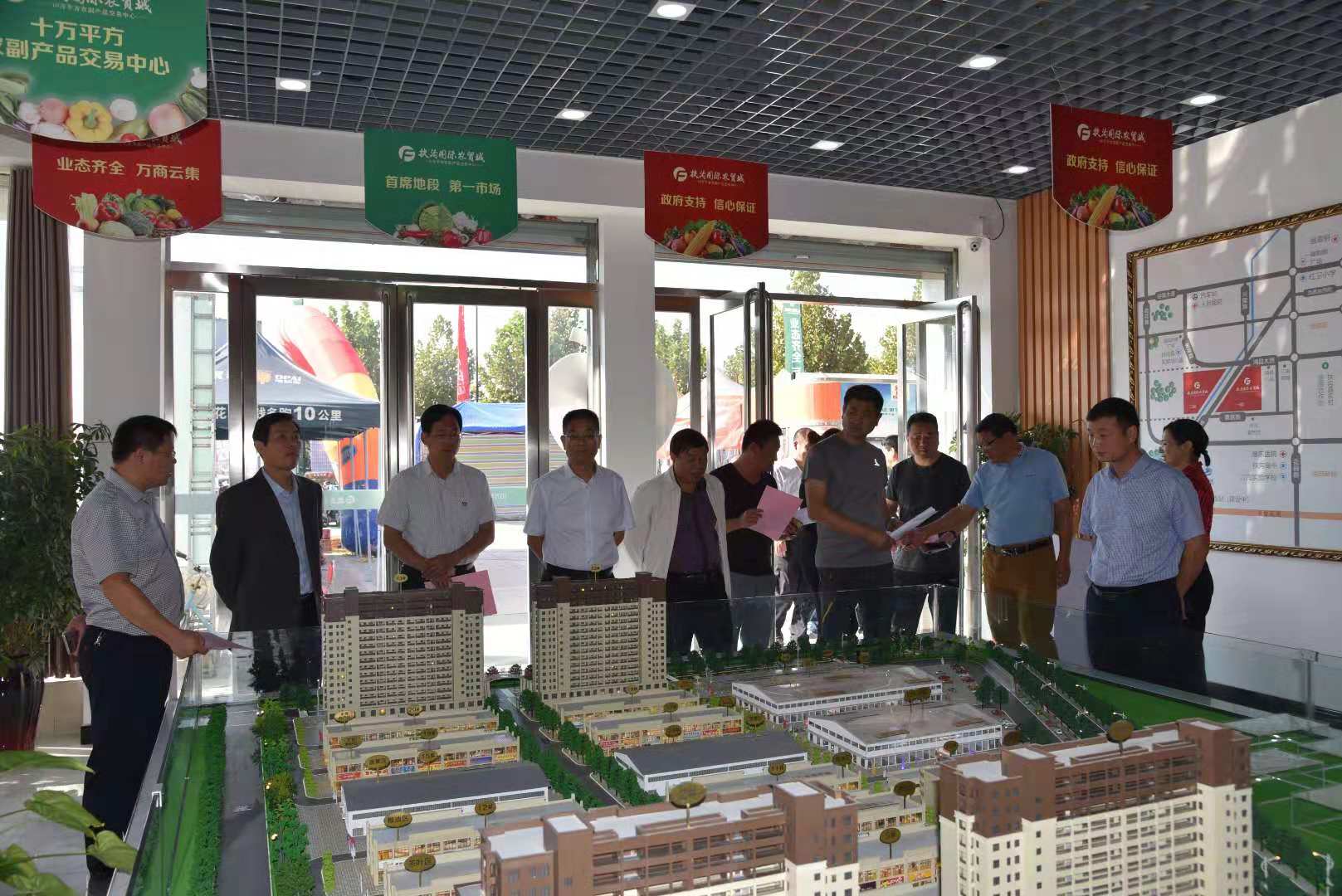 黄淮大程国际农贸城是扶沟县委、县政府重点扶持项目,计划占地360亩,一期设计投资两亿一千一百万元,可容纳1200家商户入驻,建设工期二年,今年年初开工建设到年底前部分商铺可提前投入使用;二期主要建设蔬菜深加工精包装区和蔬菜物流配送区。在农贸城,卢伟一行认真察看了项目建设情况,听取了项目负责人的项目建设情况汇报。卢伟要求,要加班加点,倒排工期,在保证工程质量的同时,加快工程建设进度,争取早建成早使用早见效益。