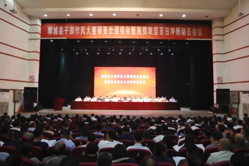 10月7日上午,郸城县干部作风大整顿第四次查处通报大会暨脱贫攻坚“百日冲刺”动员会召开。会议贯彻落实全省脱贫攻坚电视电话会议和脱贫退出培训会议精神,聚焦脱贫摘帽目标任务和作风问题,分析当前形势,进一步动员全县上下统一思想、提振精神,强化责任、尽锐出战,向脱贫摘帽发起总攻。县委书记罗文阁出席会议并讲话,县长李全林主持会议。县领导崔卫国、李建军、姜永来、侯磊、吴青锋、王智华、吕振龙、马超、胡友涛、崔卫华、刘辉等参加会议。
