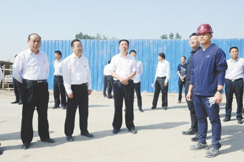 当天上午,闫立超、张建党一行先后来到贵和家园、联营职专新校区、建业世悦府、乾和家园、万达城市综合体、仁和家园(西区)、圣桦城市综合体等12个项目施工现场进行观摩。每到一处,闫立超、张建党一行都详细听取项目负责人的汇报,对施工过程中遇到的困难和问题进行现场研判,现场提出解决方案。