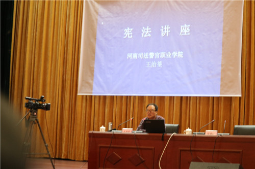 会上,省司法警官职业学院法律系主任王治荃、法学硕士孙启河两位教授分别从宪法的时代背景、基本内涵、精神实质和重要意义及依法行政的基本含义、本质和全面推进依法行政的奋斗目标等做了精彩辅导。