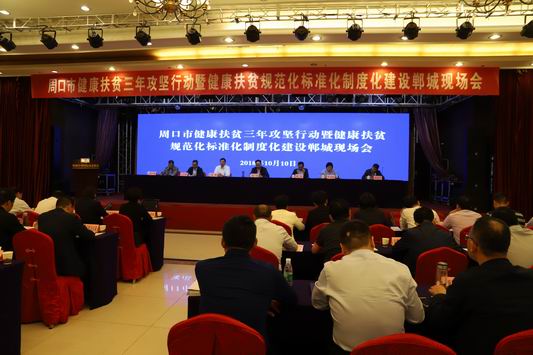 10月10日,全市健康扶贫三年攻坚暨健康扶贫规范化标准化制度化建设现场会在郸城县召开。会议总结成绩,交流经验,安排部署我市健康扶贫三年攻坚工作任务,加快推进健康扶贫规范化标准化制度化建设,为我市贫困人口如期脱贫提供健康保障。副市长张广东、市政府副秘书长刘涛、市卫计委主任刘炯、县委书记罗文阁、县人大常委会副主任张爱联、副县长肖炜、县政协副主席崔家龙参加会议。