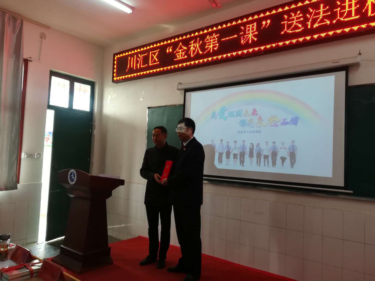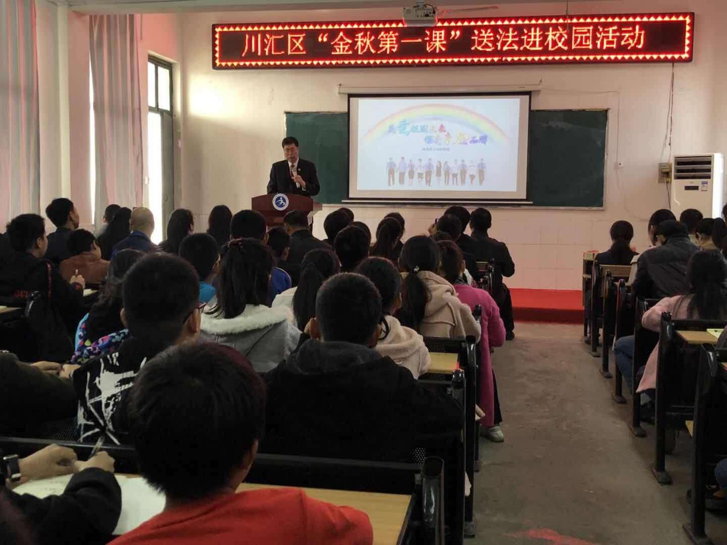 10月16日上午,由川汇区人民检察院、川汇区教体局、共青团川汇区委、川汇区妇联共同举办的“金秋第一课”送法进校园活动在周口市第23中举行。