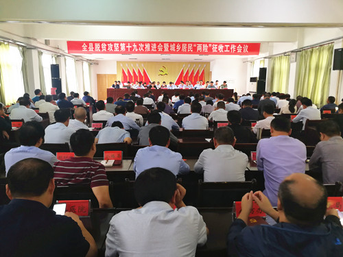 本报讯 (记者 韦伟 通讯员 柳柯 程健 郑东建 文/图) 10月9日,沈丘县召开脱贫攻坚第十九次推进会暨城乡居民“两险”征收工作会议(如图)。皇甫立新、贾庆伟、殷晓春、赵振、杨所超、郭宇、郝四春、曹新旺、王琳、马伟、夏立文、梁熙等在家的县四个班子领导及副处级以上干部出席会议。县委各部委常务副职,各乡镇(办)党(工)委书记、乡镇长(办事处主任)、扶贫副书记、分管城乡居民医保工作副职、扶贫办主任,县直各单位“一把手”,有驻村任务的二级机构负责人,以及县脱贫攻坚督导组组长参加了会议。