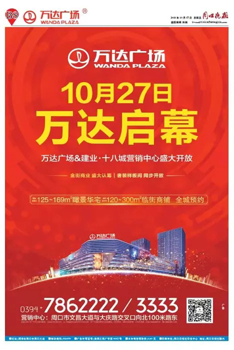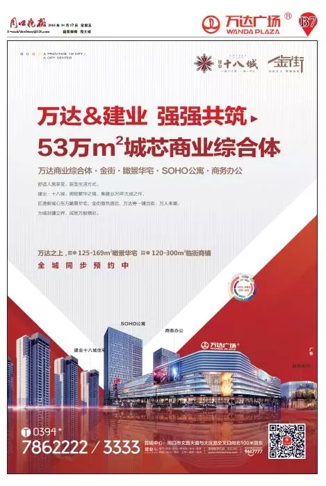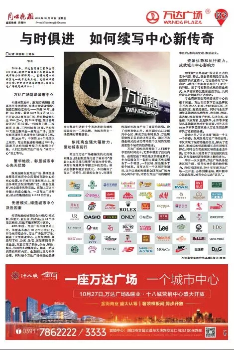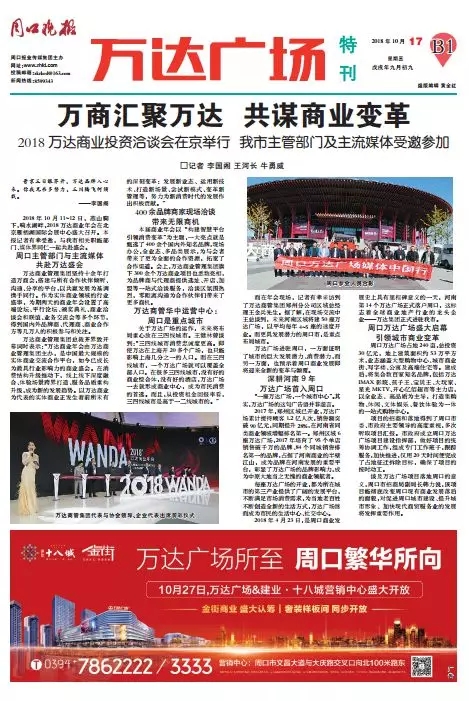 在今天的《周口晚报》万达广场特刊上