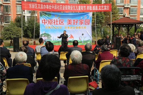 金秋十月,菊花飘香。10月17日重阳节当天,东新区中原社区携同金锐物业在该社区组织开展了“拥抱新时代 欢度重阳节”文艺演出活动。东新区社会事务局局长朱放哲,房屋征收中心主任闫国政,文昌办事处主任李向峰,国库支付中心副主任科员齐孟磊,文昌中学副校长康瑞玲参加活动。