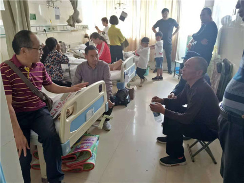 10月5日上午,帮扶单位淮阳县工信委副主任韩彦了解到情况后,专门购买一些补品到医院看望张安生。