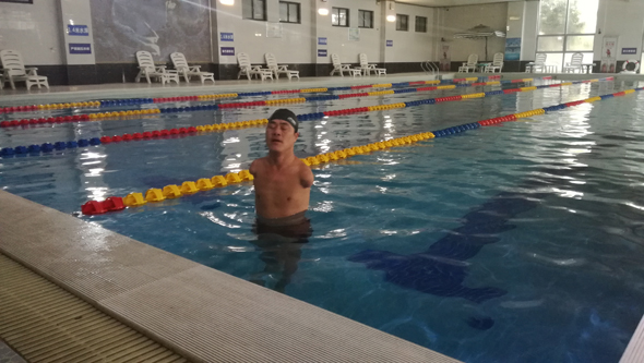 在交谈中记者了解到,岛建书在5岁时触高压线造成双臂截肢。“12岁那年,我在电视上看别人游泳,觉得别人能做到的我也能做到,从那时起我就决定学习游泳。”岛建书说,当时没有条件,他就在河里自学,期间还两次溺水,所幸被人救起。