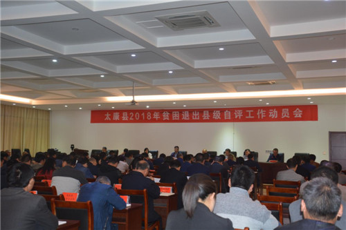 10月21日,太康县在脱贫攻坚指挥部三楼会议室召开2018贫困退出县级自评工作动员会,县委副书记、政法委书记王程清,县委常委、副县长张保华、王永刚、王正义、司春荣、刘凤芹、祝俊伟等县级领导以及县直有关单位扶贫工作负责同志参加了会议。