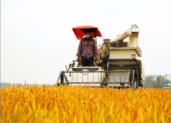 10月21日,扶沟县城郊乡五里店村金灿灿的稻田里,村民正忙着收割水稻。眼下正是单季水稻成熟期,该乡村民纷纷抢抓晴天,忙着收割水稻,田间地头处处呈现出一派丰收景象。